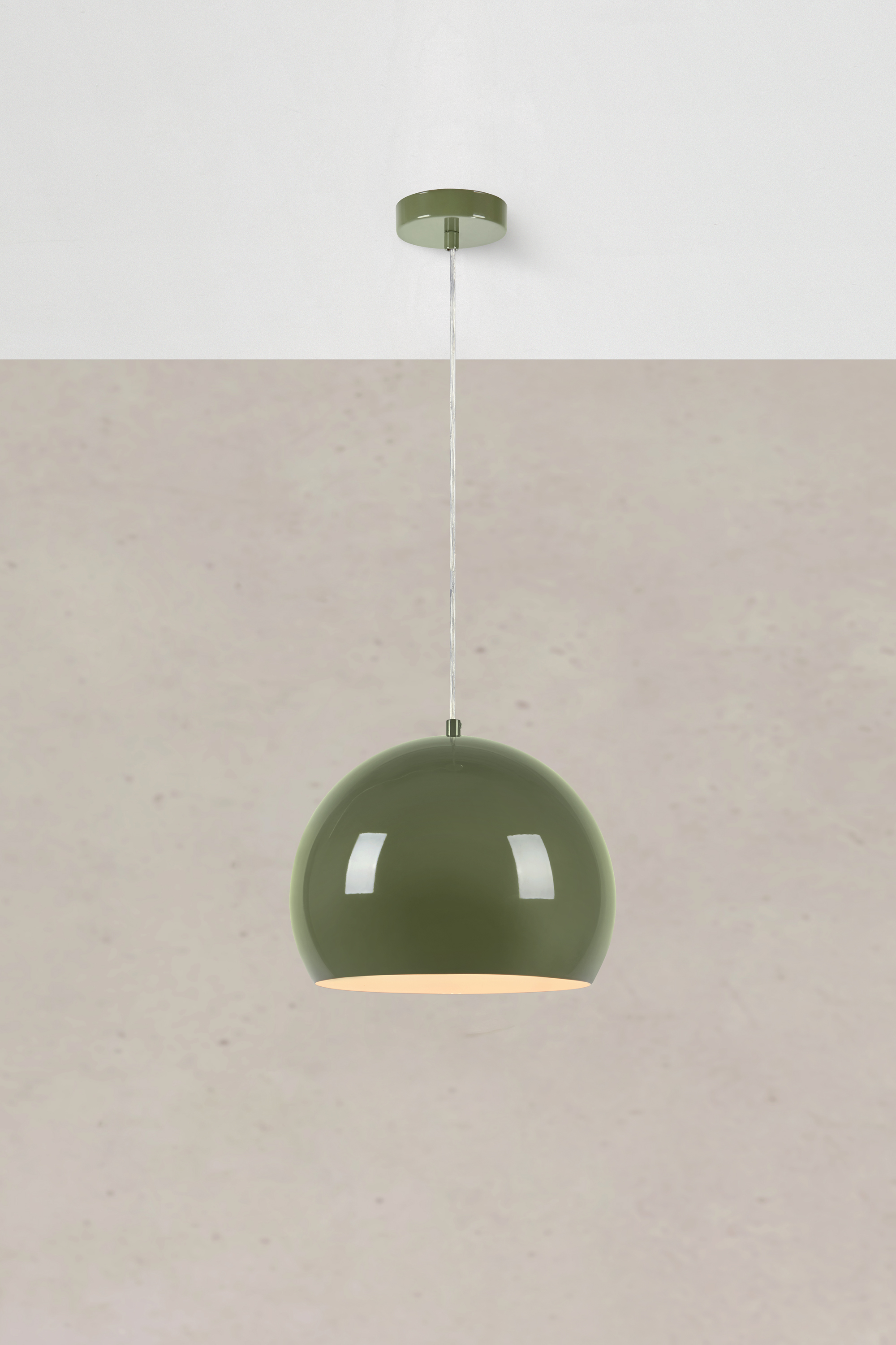 Lampy z serii Pop w odcieniach zieleni i brązu, a także model Mantar w kolorze niebieskim.